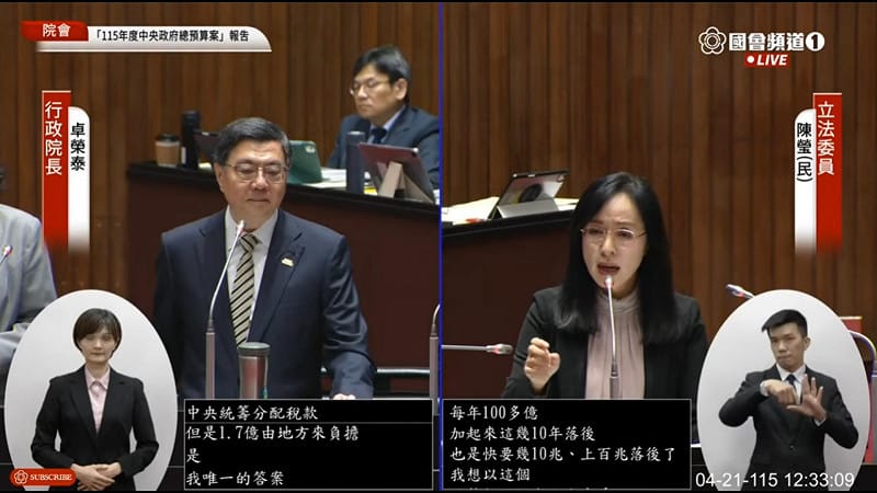 立法院今日召開院會,邀請行政院院長、主計長、財政部部長列席報告「115年度中央政府總預算案」編製經過並備質詢。