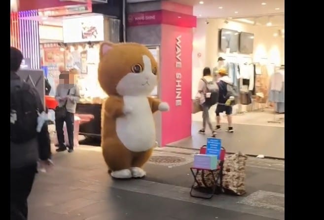 台北市西門町商圈近期出現身穿橘色布偶貓裝扮的街頭表演,可愛的造型以及隨音樂擺動的表演,引起許多民眾拍照分享,更有網紅拍片引起熱潮,但警方接獲檢舉前往調查,發現身穿布偶裝的30歲謝姓男子並未持有街頭藝人執照,依法恐面臨最高2400元罰鍰。
