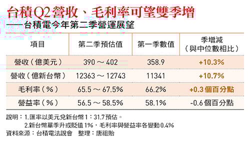 更驚豔的是,台積電原先預估第1季毛利率63%至65%、營益率54%至56%,而實際成績分別是66.2%與58.1%,雙雙超越財測,並同步改寫歷史新高;每股稅後純益(EPS)22.08元,也是單季新高。