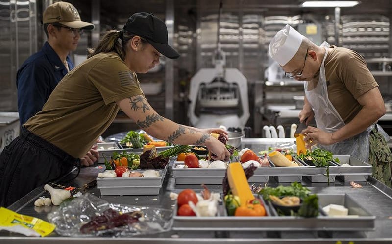 根據計算,美國海軍在中東區域部署超過1.65萬名海軍與陸戰隊員,另有6000人即將隨「布希號(USS George H.W. Bush CVN-77)」航艦打擊群抵達,主要執行對伊朗的封鎖行動及確保荷姆茲海峽航行安全。海軍官員坦承,儘管長期部署常導致菜單重複,部分船員會自備泡麵或蛋白粉補充;但強調,在高強度任務期間,營養均衡與船員福祉仍是首要考量。