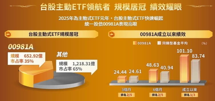 戰績說話: 投資人指出 00981A 規模已衝上 1,833 億元,年初至今報酬達 62.64%,這讓市場對「統一」品牌的主動選股能力充滿信心。