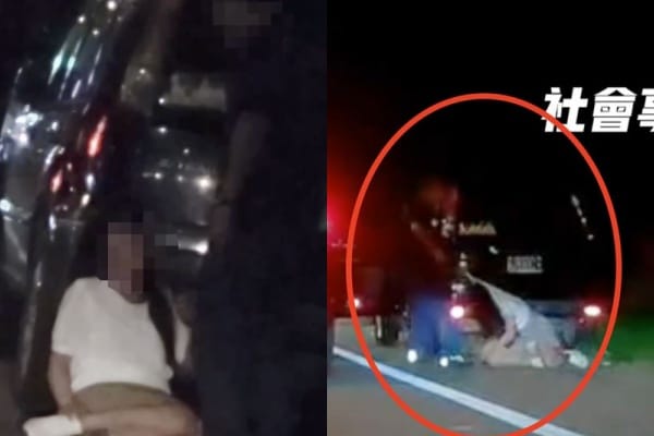 畫面顯示,一輛賓士車停在路中央,身穿灰色上衣女子與黑衣男當街拉扯,女子更不斷哭喊「不要打我了!不要再打我了」,警方指出,兩人為夫妻,因爆發激烈口角,妻子一時氣憤直接下車,丈夫為將妻子帶回車上才有此一幕,路過民眾目擊,擔心發生危險,趕緊報警處理。