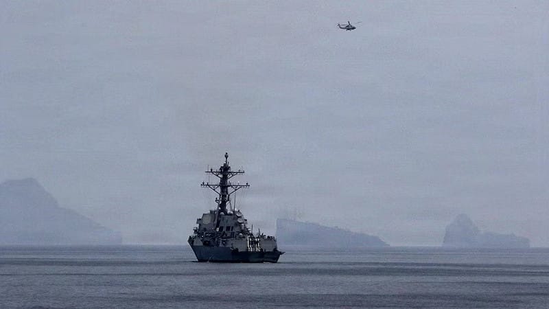 伊朗海上護衛隊護送散裝船出航,美軍試圖攔截,最終選擇放行。 圖:翻攝自@rainbow78521