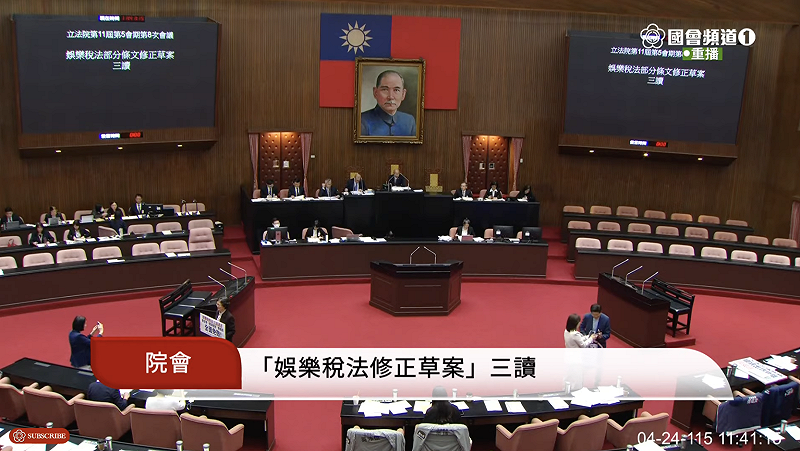立法院院會今(24日)三讀修正通過娛樂稅法部分條文修正案,刪除電影、職業性歌唱、說書、舞蹈、馬戲、魔術、技藝表演、夜總會、戲劇、音樂演奏、非職業性歌唱、舞蹈等表演,以及各種競技比賽的娛樂稅。至於舞廳或舞場、高爾夫球場等娛樂稅,授權地方政府視狀況提經地方議會通過、報財政部備查後可停徵。