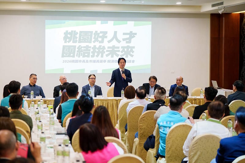 賴清德表示,桃園在台灣民主發展中具有關鍵地位,此次座談整合地方黨公職、不分區立委及在地市議員,未來將組成最強「桃園隊」,展現收復失土、贏回桃園的決心。