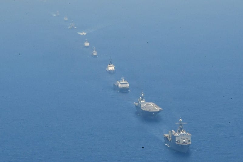 美菲年度「肩併肩」軍演,5國11艦進行多國海上演習聯合航行。 圖:翻攝「X」@US7thFleet