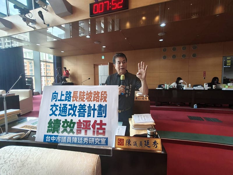 台中市議員陳廷秀今(29)日在市議會「警消環衛」業務質詢中,針對消防基層權益及重大路段交通安全提出建言。陳廷秀不僅成功爭取到消防分隊增設「副分隊長」編制,預計今年內完成設置,更肯定警察局在向上路長陡坡路段的執法成效,讓該路段交通事故率大幅下降超過25%。