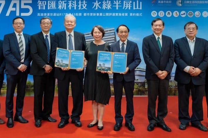 高雄市政府捷運工程局配合楠梓產業園區發展,於捷運R17世運站A5街廓辦理公辦都市更新招商,今(29)日與「日勝生活科技股份有限公司」辦理簽約典禮,完工後將提供A級商辦及員工住宅供半導體、AI產業進駐使用,全案預計今年11月動工、119年底完工,以配合楠梓產業園區台積電及相關廠商需求。