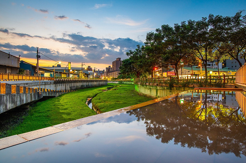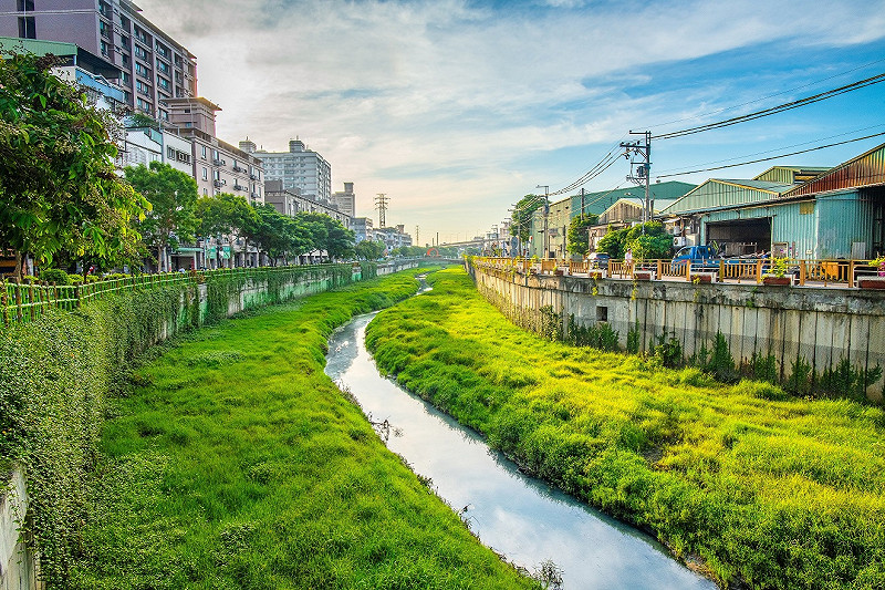 水利局再持續向水生態方面突破,期望自然與城市間共存共榮,在渠底堆砌卵粒石進行簡易水質過濾、營造濕地環境、周邊景觀綠美化等;並於渠道內兩側土地及堤壁種植炮仗花、紫藤及紫色馬櫻丹,隨著季節變化,各種植栽陸續開花,配合景觀瀑布設置,呈現不同的河岸樣貌。