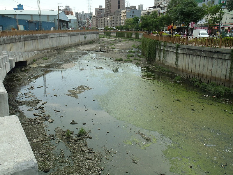 水利局克服施工位置地處交通要道,工程機具進出不易,以及大雨時河道水位高漲、工業廢水接觸影響等種種困難,配合地質條件設置版樁護岸設施,再辦理渠道調整、渠底固化,確保大雨時水流順暢,也方便平日溝渠內疏濬。